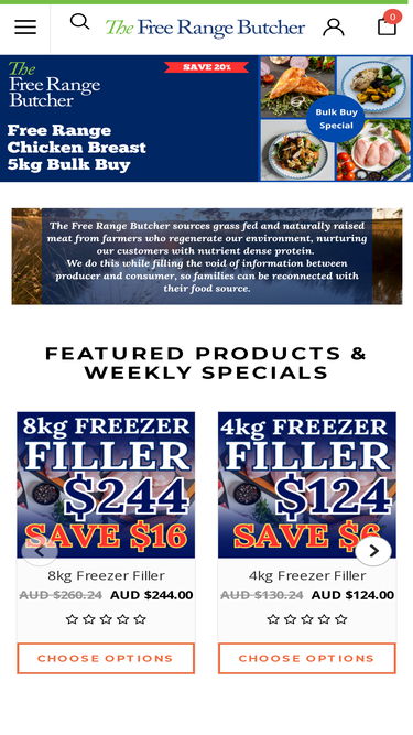75%Description Product Reviews Shipping & Returns Premium Free Range Whole Chicken Check out our recipes: C ooking tips for Perfect Roast Chicken Slow Cooked Lemon & Rosemary Whole Chicken Whole Roasted Orange Chicken Apple Chicken Bake Chicken Mole Click on the below You Tube image to watch how Michele poaches a Whole Chicken 31 Reviews Hide Reviews Show Reviews Always great quality 5 Posted by Unknown on 2nd Jan 2026 We’ve been ordering from the Free Range Butcher for years and the quality is always so much better than from any other butcher. Whole chicken 5 Posted by Deborah on 8th Jan 2025 Full of flavour and easy to roast. Excellent chicken like my grandmother used to bake Chicken 5 Posted by Andrea Walloschek on 3rd Jan 2025 Excellent service and outstanding quality Great quality and flavour 5 Posted by Gideon on 27th Apr 2023 Good bye supermarket meat Whole chicken. Best chicken! 5 Posted by Alexandria on 21st Jul 2022 I make my own bone broth, so used the carcasses once the protein had been consumed. I can't even begin to tell you the difference it made to my broth using these chickens, instead of chickens from a big supermarket. I know it sounds stupid, but my broth actually tasted and smelled like chicken! Which meant all the meals I made with the broth tasted amazing. Yesterday I made a broth using supermarket carcasses. The first since my last batch was used up, and I can't tell you how disappointed I am with the lack of chicken taste and smell. Whole chicken 5 Posted by Anne Tran on 30th Mar 2022 We have ordered chicken since the Sydney lockdown in 2020 and love it (and order products) so much we wouldn’t buy chicken anywhere else. Whole Chicken 5 Posted by Bronwen Sidaway on 5th Jan 2022 Plump, tender and moist chicken. Carcass made beautiful stock. Couldn't bear to waste any of it! Fabulously tender chicken 5 Posted by Vicki on 3rd Nov 2020 We firmly believe in the "one bad day" practice of re