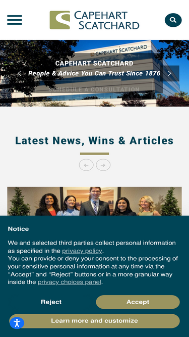 93%Capehart Scatchard is a full-service, diversified law firm of more than 90 attorneys practicing in offices throughout NJ, PA, and NY.