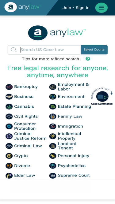 93%anylaw - a free legal research service that gives you unlimited access to massive amounts of legal data, organized in a way that will save you time and money.