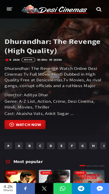 90%Welcome to DesiCinemas tv. Watch and discuss your favourite Indian Movies online on Desi Cinemas. We are your one stop source for the Latest Bollywood Movies.