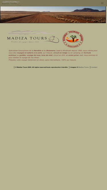 100%voyage en namibie, madiza tours organise votre safari sur mesure, circuit individuel ou guidé, expédition 4x4, en namibie au botswana et en afrique australe.