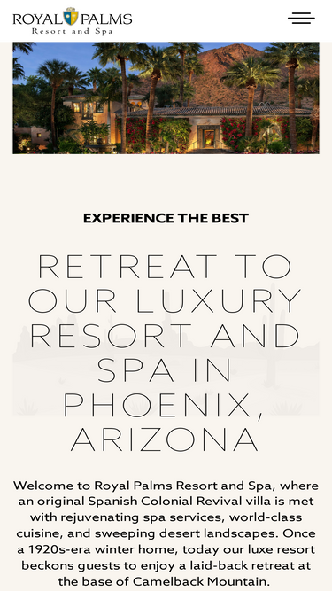 88%Experience a luxurious retreat at our Spanish-inspired resort in Scottsdale, Arizona. Royal Palms Resort and Spa offers spacious rooms and unbeatable dining options. Book with us today.