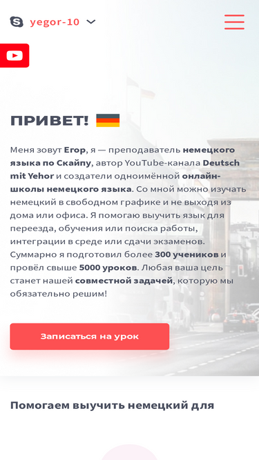 78%Уроки немецкого языка по Скайпу с Егором и Аней — авторами YouTube-канала Deutsch mit Yehor. Изучайте немецкий онлайн интересно и современно!