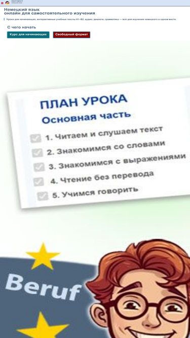 72%Учите немецкий самостоятельно: учебные тексты A0–B2 с аудио и переводом, грамматика, диалоги, курс для начинающих и интерактивные тренажёры.