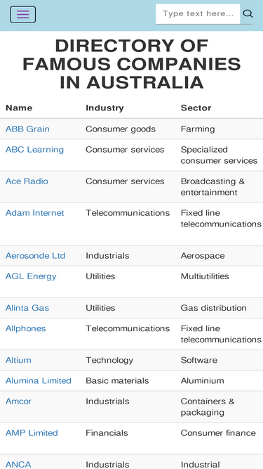98%brief information of famous companies in australia: bank, consumer services, ...