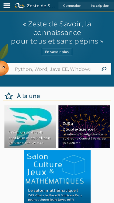 100%zeste de savoir est un site de partage de connaissances sur lequel vous trouverez des tutoriels de tous niveaux, des articles et des forums d’entraide animés par et pour la communauté.
