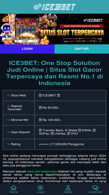 100%Ice3bet, solusi terbaik dalam mencari situs slot online terpercaya. Menawarkan berbagai permainan slot gacor terbaru yang mudah jackpot maxwin. Buka 24 jam.