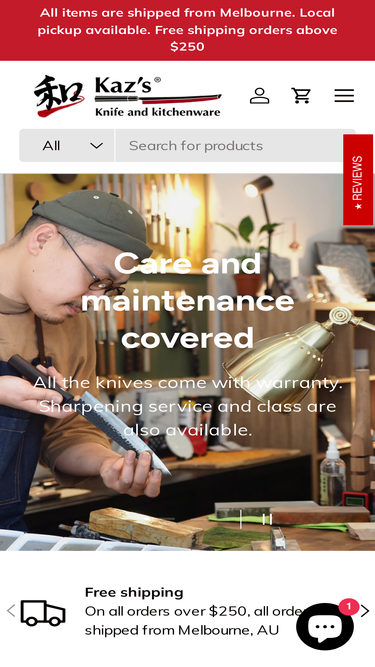 88%Located in Prahran, VIC 3181. Talk to Kaz's for the most suited kitchen knife for your needs and sharpening techniques. Choose from a wide range of Japanese knives such as Gyuto (Chef's), Santoku, Petty, Nakiri, Carving, etc. All the knives come with lifetime warranty.