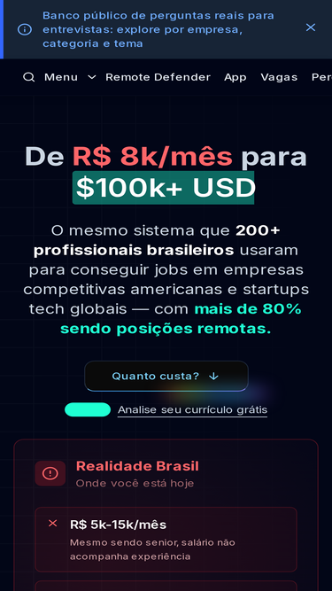 O único portal de vagas feito especificamente para desenvolvedores brasileiros. Vagas curadas em empresas que contratam Brasil, pagam bem e têm cultura de engenharia forte.