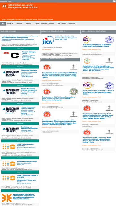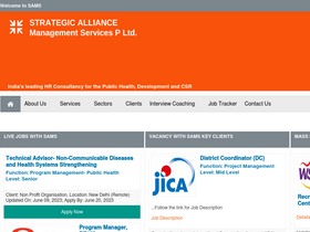 61%Strategic Alliance Management Services Private Limited (SAMS) is a premier, pan-India, management consultancy, incorporated in 1995. A niche consulting firm, SAMS works exclusively with the social sector. The company has been focused on providing consulting services to premier not-for-profits in the public health and development sectors since 1997. We also work with the Central and State Governments of India.