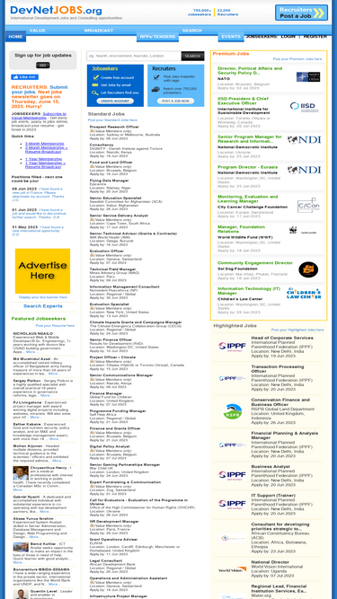 Browse over 2500 verified NGO and international development jobs and consultancies worldwide. Daily alerts, online applications, and new vacancies added daily.