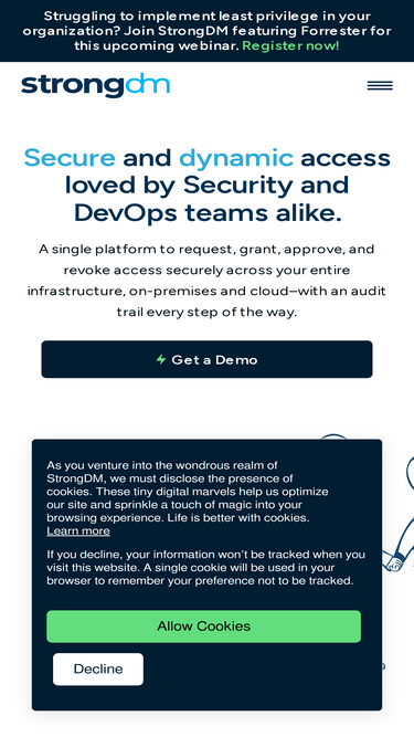 100%StrongDM's innovative policy-based action control offers a more effective approach to enterprise security by ensuring that a user’s every action is scrutinized and authorized.