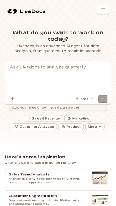 80%Most data tools suck. Livedocs doesn’t. It’s your team’s first data hub—connect data, define metrics, and build live reports with zero setup hell.