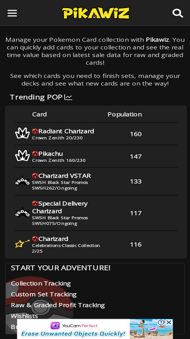 76%huge database, updated with all the latest prices for pokemon cards, with raw prices, graded prices, psa population data and more