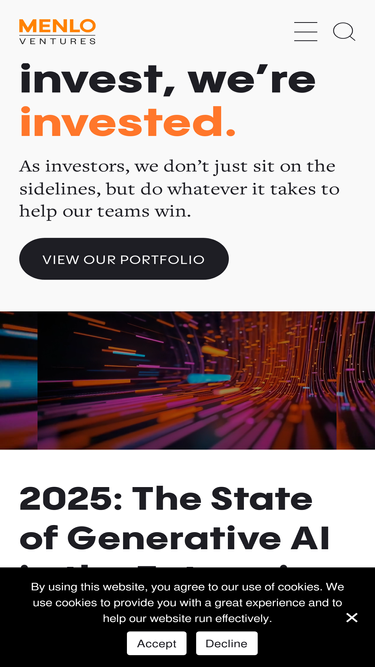 88%Menlo Ventures is a Bay Area venture capital firm that invests early-stage across consumer, enterprise, and healthcare technologies.
