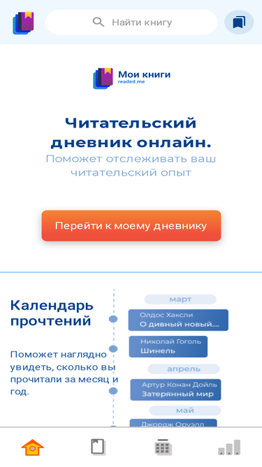74%Readed.me - онлайн читательский дневник. Отслеживайте свой читательский опыт, оставляйте оценки, создавайте подборки книг и находите новые для себя книги, получайте персональные рекомендации, на основе вашей библиотеки.