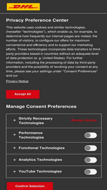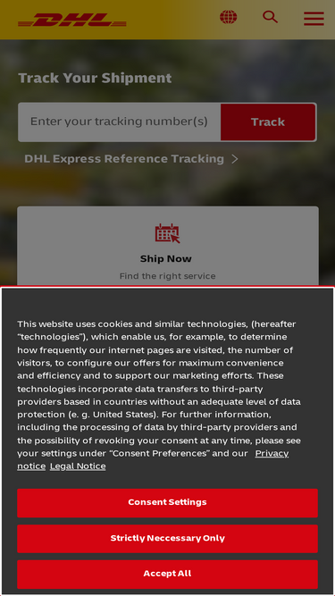 84%DHL website terms and conditions and a statement on DHL's commitment to user privacy on its website.