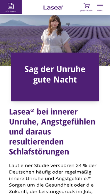74%Lasea® - der pflanzliche Ruhestifter bei innerer Unruhe Angstgefühle und innere Unruhe bestimmen Ihren Tag? Lasea® kann Ihnen helfen, diese Gefühle zu reduzieren und mehr Lebensqualität zu gewinnen.