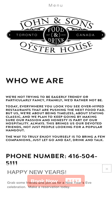 100%Classic East Coast seafood, fresh oysters daily, handcrafted cocktails, and warm hospitality in Toronto’s Financial District. Book your table at John & Sons Oyster House.