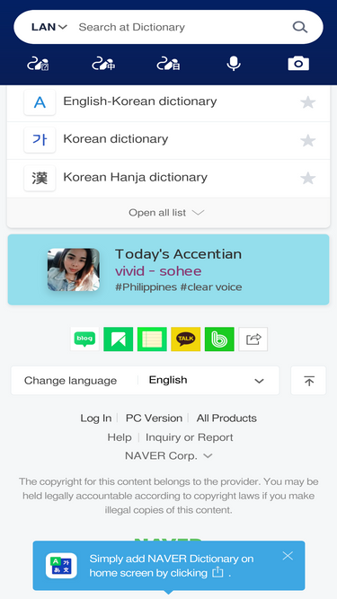 영어, 국어, 한자, 일본어, 중국어를 포함한 67종 언어로 총 3000만 표제어를 제공하는 네이버사전