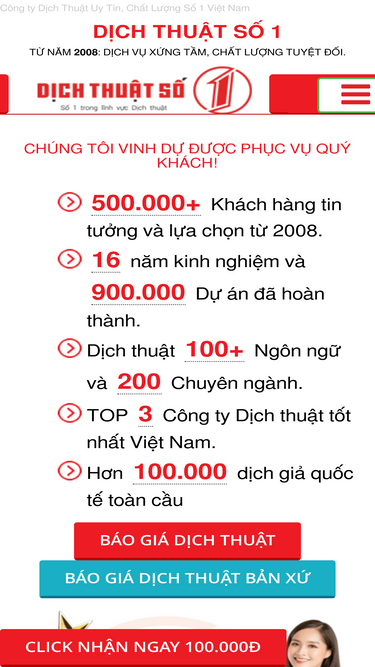 100%Dịch Thuật Số 1 cung cấp dịch vụ dịch thuật bản xứ chất lượng cao, thực hiện bởi 100% dịch giả bản ngữ tại Việt Nam hoặc các quốc giá khác