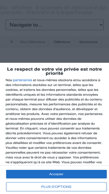 81%dictionnaire des d�finitions et des synonymes. le dictionnaire dico d�finitions propose plus de 100 000 d�finitions et 35 000 synonymes.