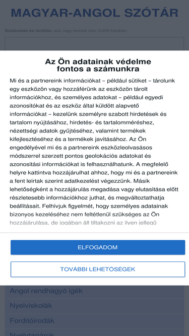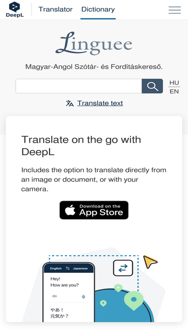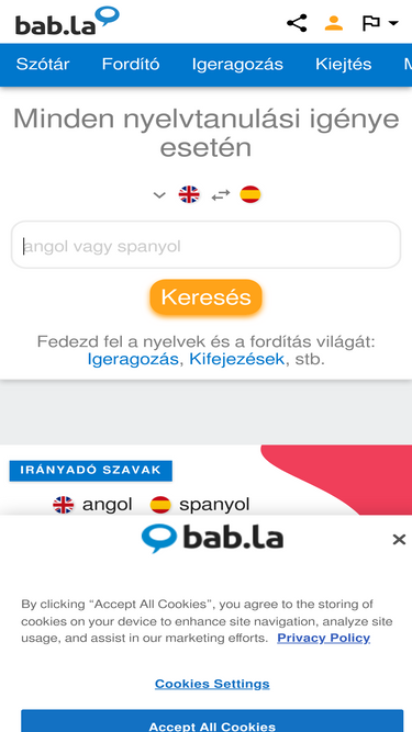 84%Magyar Szótár és Keresőmotor 200 000 000, emberi fordítóktól származó példamondattal. Nyelvek: Magyar, angol, német, francia, és további nyelvek