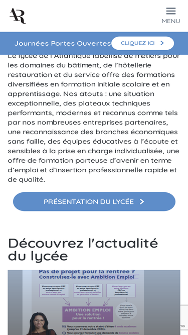 50%le lycée de l’atlantique labellisé de métiers pour les domaines du bâtiment, de l’hôtellerie restauration et du service offre des formations diversifiées en formation initiale scolaire et en apprentissage. nos atouts : une situation exceptionnelle, des plateaux techniques performants, modernes et reconnus comme tels par nos nombreuses entreprises partenaires, une reconnaissance des branches économiques sans […]