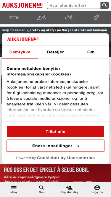 100%Auksjonen.no er Norges største nettauksjon for kjøp og salg av brukte maskiner, kjøretøy og utstyr. Hos oss finner du et stort utvalg av biler, båter, MC, bygg og anleggsmaskiner og lastebiler til salgs. Trygg budgivning og sikker betalingsløsning.