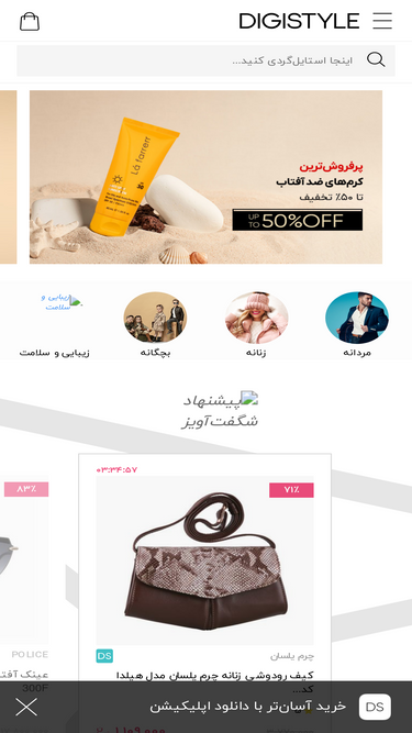 68%خرید آنلاین انواع پوشاک، کیف، کفش و اکسسوری زنانه، مردانه، دخترانه، پسرانه و نوزادی و محصولات زیبایی سلامت، عطر، ادکلن و لوازم آرایش با قیمت عالی در دیجی استایل