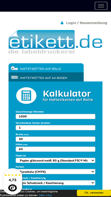 100%Bestellen Sie hochwertige Rollenhaftetiketten. Bestimmen Sie Wickelrichtung, Rollenkerndurchmesser, max. Rollendurchmesser und Etikettenanzahl pro Rolle.