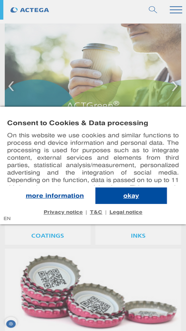 100%actega develops, produces and distributes specialty coatings, inks, adhesives and sealing compounds with a focus on the packaging, graphic arts and medical industry. with production facilities in europe, north and south america and china, we can react flexibly to customer requirements and provide technically advanced product solutions.
