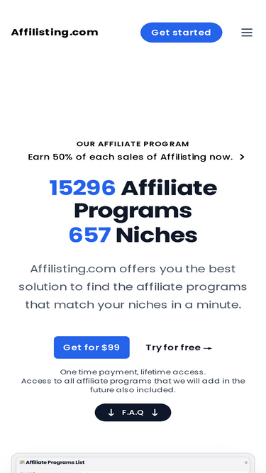 96%access a list of 16000+ affiliate programs across 650+ niches for only $99 and start your affiliate business now.