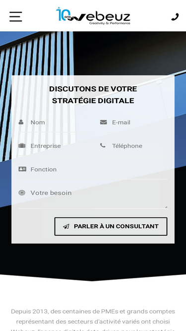 100%CRM intelligent signé Webeuz. Qualification, scoring et relances automatisés avec agents IA vocaux et textuels intégrés.