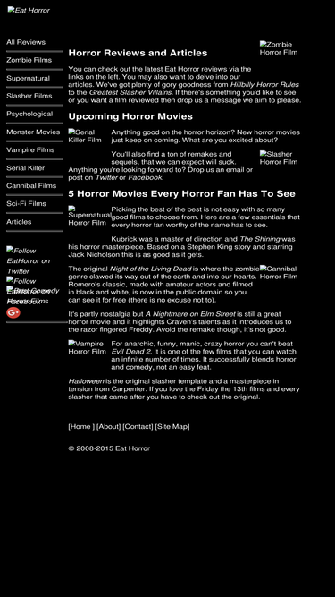 100%eat horror: reviews of horror films past and present. you'll find the top horror movies and b horror movies covered here along with articles on the horror genre, horror characters, directors and actors.