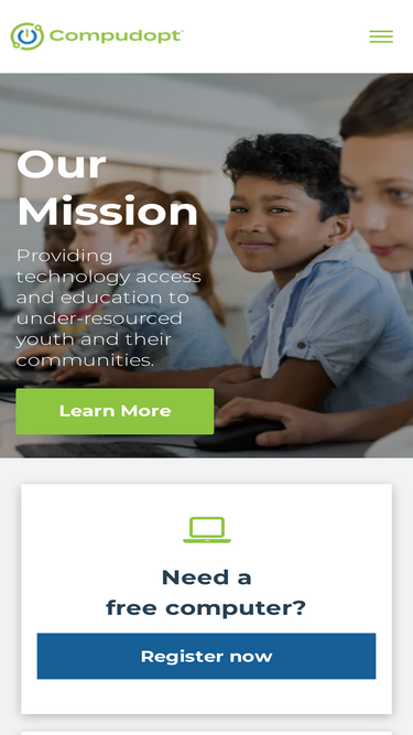 100%at compudopt, our mission is to provide technology access and education to youth and their communities. register for a free computer through our giveaway. or sign up for a free technology program today.