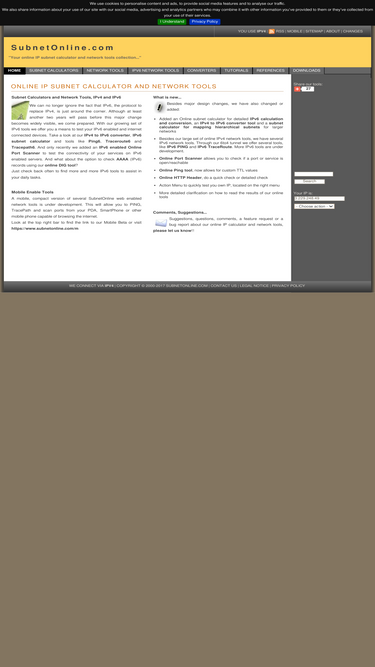 99%subnetonline.com, online subnet calculator tools, online network tools, network resources, downloads, subnetting and cidr guides and more...