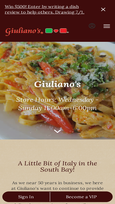 99%As we near 50 years in business, we here at Giuliano's want to continue to provide our customers with the service and quality that they expect. We offer select deli and grocery items fo...