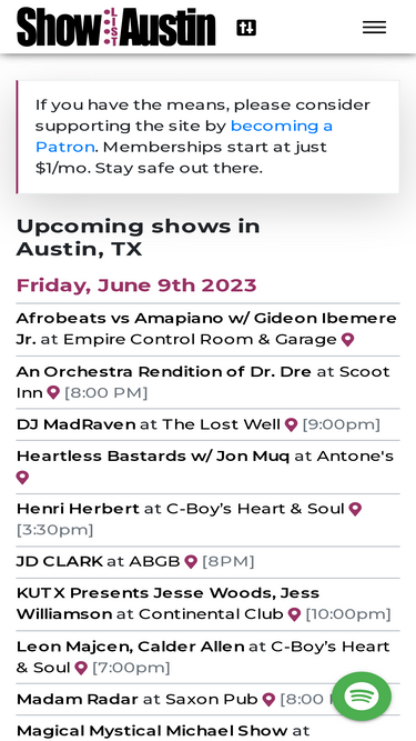 100%simple, clean listing of music shows in austin.