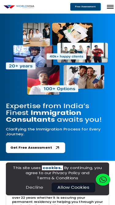 80%World Visa, India's best Immigration & Visa consultants. 15k+ cases delivered. Trusted PR & Work visa services. No Visa No Fee. Get Free Assessment.