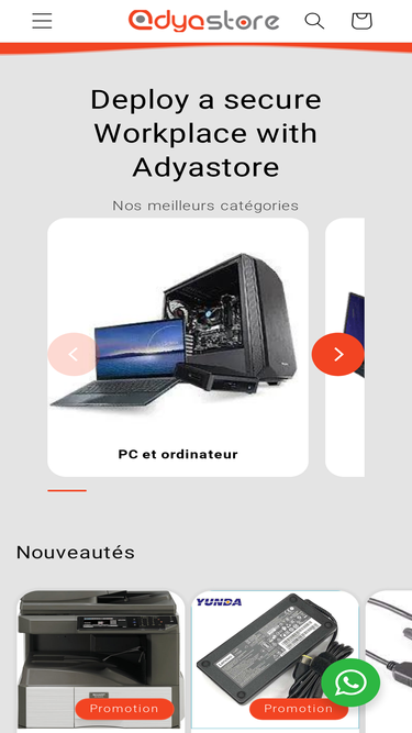 86%Adyatech, votre partenaire informatique au Maroc. Fournisseur PC portable à Casablanca, Adyastore magasin informatique près de Derb Ghallef. Expertise, qualité, et sécurité pour vos besoins en matériel informatique.