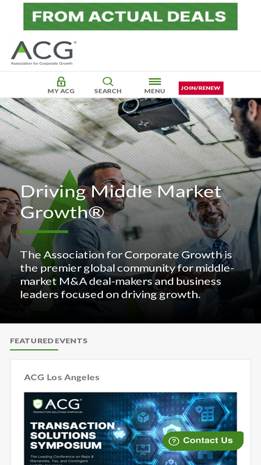 the association for corporate growth® (acg) is the premier network for middle-market m&a dealmakers and business leaders. acg is proud to have over 13,000 highly engaged members across 61 global chapters. find the chapter closest to you and get connected today.