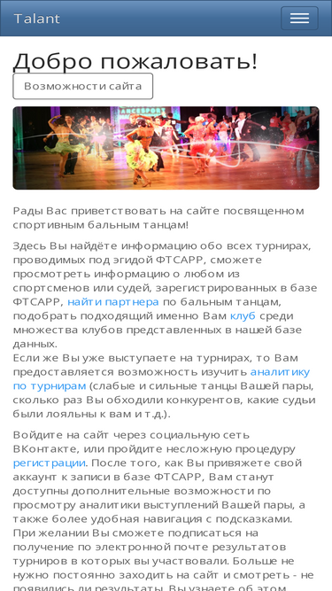 80%talant это - база данных спортсменов фтсарр, поиск партнера, все танцевальные клубы россии на карте, продажа платьев, фото и видео, результаты ваших выступлений с подробным анализом.