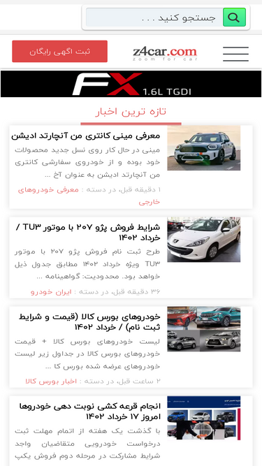 78%سایت z4car زدفورکار، بانک اطلاعات خودرو ؛ با زدفور z4 در کمتر از 4 دقیقه خودروی خود را آگهی کنید و از مهم ترین عناوین روز خودرو مطلع شوید.