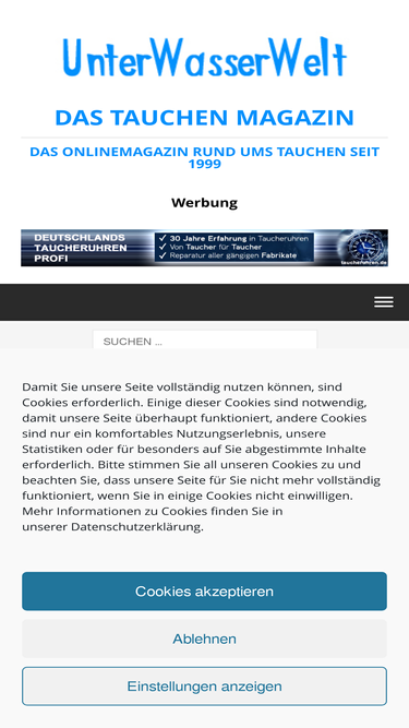 98%Europas große Tauchzeitschrift erscheint monatlich und informiert über Tauchreiseziele, Tauchausrüstung, Meeresbiologie und UW-Fotografie.