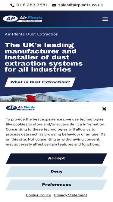 99%Providing industry-leading Dust Extraction and Control Systems since 1897, Air Plants are a family-run business committed to safety, value and service.