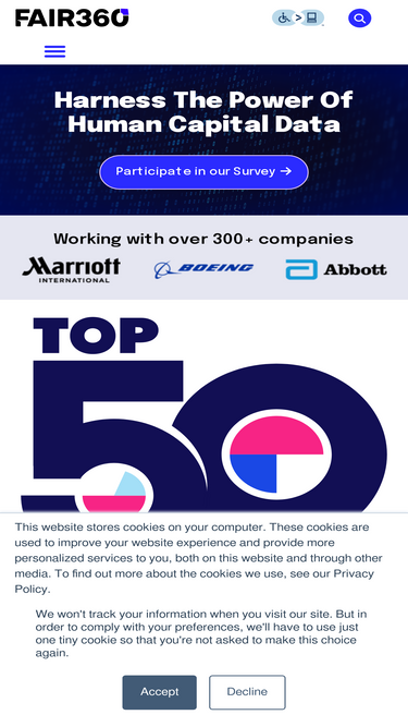 46%the survey is open! complete the top 50 survey before march 7, 2025, and compare your organization with hundreds of companies committed to workplace fairness. enter the top 50 competition 2024 virtual event relive every moment from this inspiring and informative event! event recap save the date the top 50 companies event returns to cipriani’s...