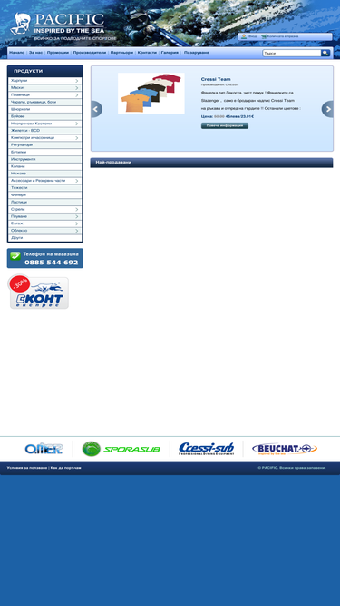 90%магазин пасифик предлага всичко необходимо за подводните спортове и аксесоари за плуване. ние сме предствители на световните марки cressi, omer, beuchat, sporasub и aquatys