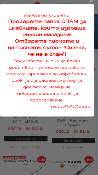80%Риболовен магазин AkvaSport.com | Онлайн от 2005г, над 25 години в търговията с риболовни принадлежности