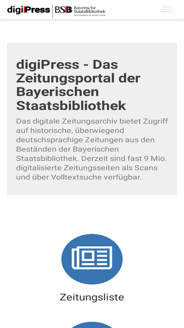 90%Das Zeitungsportal der Bayerischen Staatsbibliothek mit über 1,3 Millionen digitalisierten und im Volltext durchsuchbaren historischen Zeitungsausgaben